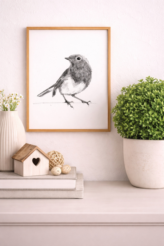 - Stevige poster met een roodborst illustratie